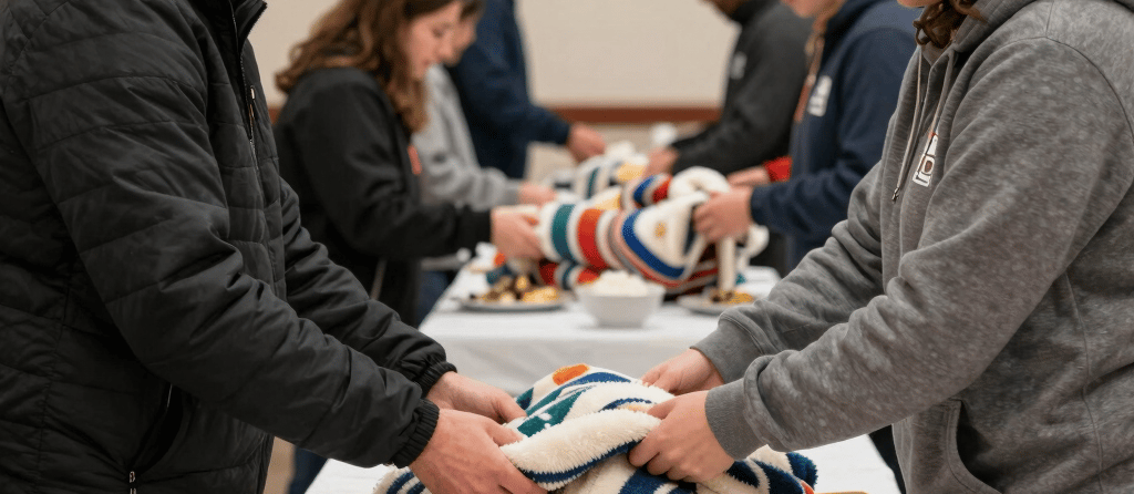 Engaging gatherings like food giveaways that build trust and connection in the community.